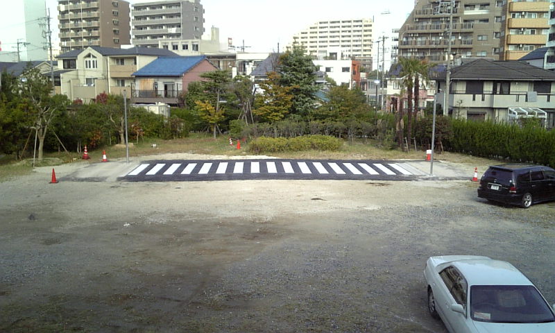 だけど、四隅のコーンの下に測定用の杭が打ち込んであったので、なんか測ってるんだよ、たぶん