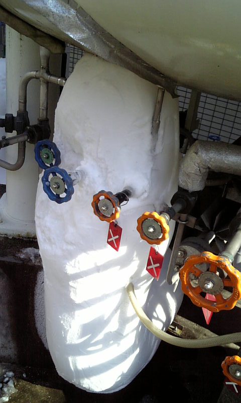 外の液体窒素タンクの下